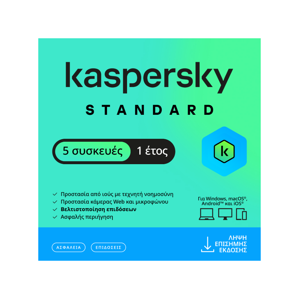 Το Kaspersky Standard διαθέτει ασφάλεια για πολλές συσκευές, η οποία έχει σχεδιαστεί για να συμβαδίζει με την ψηφιακή σας ζωή. Απωθεί απειλές με στόχο τις συσκευές, τις εφαρμογές και τα δίκτυά σας χάρη σε